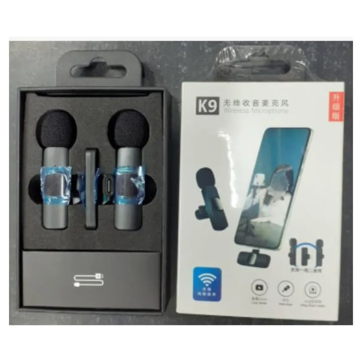 K9 Wireless Microphone With a built-in noise reduction chip, the K9 wireless microphone has a strong anti-interference ability to effectively identify and record original sound distinctly in noisy environments. Using a high-density anti-spray sponge and high-sensitivity probe, it can receive sound 360 degrees with rapid response and fine reception. It is made of high-quality material, which is lightweight and durable. The length of the K9 wireless microphone is 6.5cm, the width is 1.85cm and the height is 2.6cm. The length of the adapter is 4.45cm, the width is 2.75cm and the height is 0.78cm. Mobile phones, DSLR cameras, and computers are all in common. It is suitable for live interview and vlog shooting. The K9 wireless microphone is plug-and-play. It can be paired automatically, which gets rid of the bondage of wired. Plug in the receiver after powering on, and it can connect wireless & automatically.